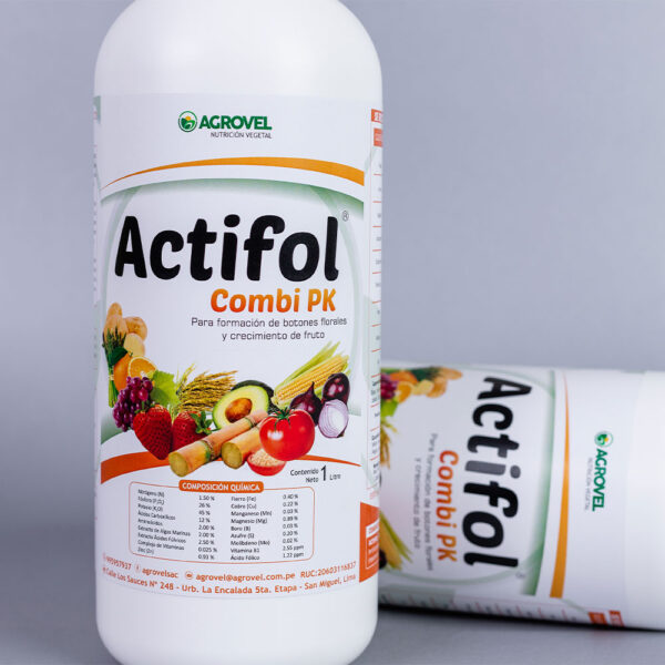 Fertilizante foliar liquido concentrado con un alto contenido en fósforo y potasio, más micro elementos que ayuda y mejora el proceso de fotosíntesis, así como la calidad final de las cosechas, pues induce y estimula la multiplicación de los órganos florales y fruteros; lo que asegura el cuajado y desarrollo final.